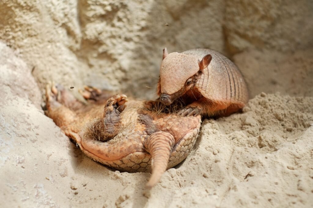 يرتدي درعًا طبيعيًا صُنع بدقة وإتقان، يتجول بهدوء بين الأعشاب والتراب. إن أول ما يلفت الانتباه فيه هو درعه المتقن، الذي يغطيه من الرأس حتى الذيل، وكأنه فارس صغير يرتدي زيه القتالي. هذا الدرع ليس مجرد جلد سميك، بل هو سلسلة من الصفائح العظمية الصلبة المغطاة بالكيراتين (نفس مادة أظافرنا) و التي تتداخل وتتصل ببعضها البعض بحركة مرنة. هذه البنية المذهلة تمنحه حماية فائقة من المفترسات، فبمجرد شعوره بالخطر، يتكور على نفسه ليصبح كرة صلبة لا يمكن اختراقها. ذلك هو حيوان المدرع.